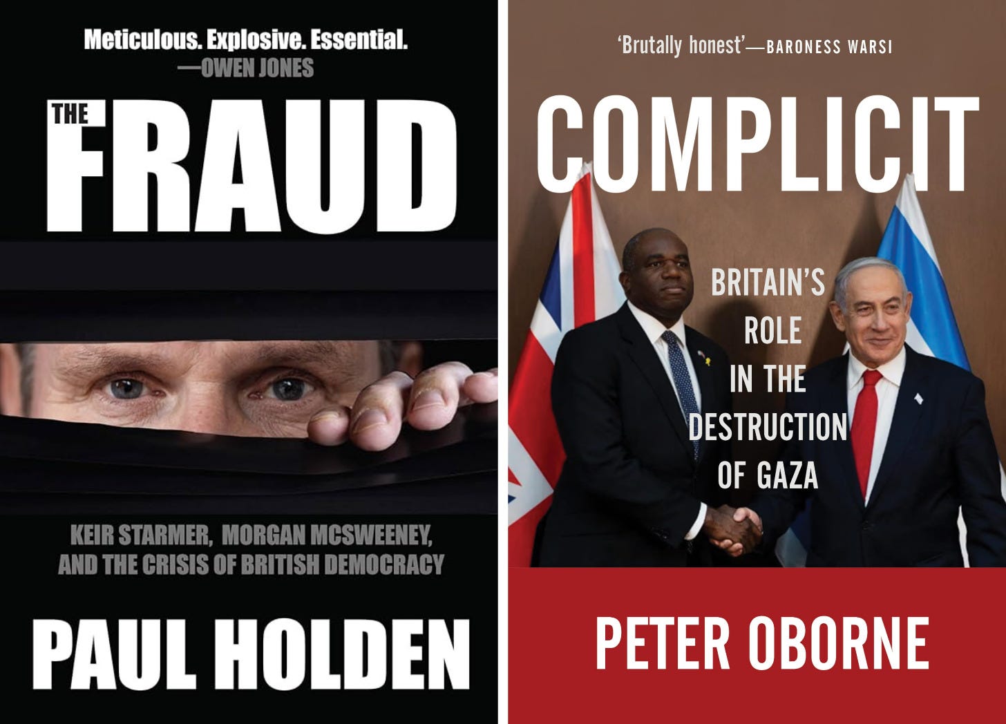 In 2025, two important – indeed, groundbreaking – bestselling books about British politics were published which were almost entirely ignored by the state-corporate media. These were ‘The Fraud: Keir Starmer, Morgan McSweeney, and the Crisis of British Democracy’ by Paul Holden and ‘Complicit: Britain’s role in the destruction of Gaza’ by Peter Oborne, both published by OR Books.